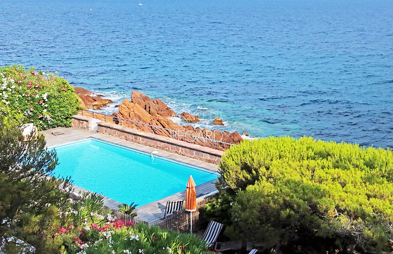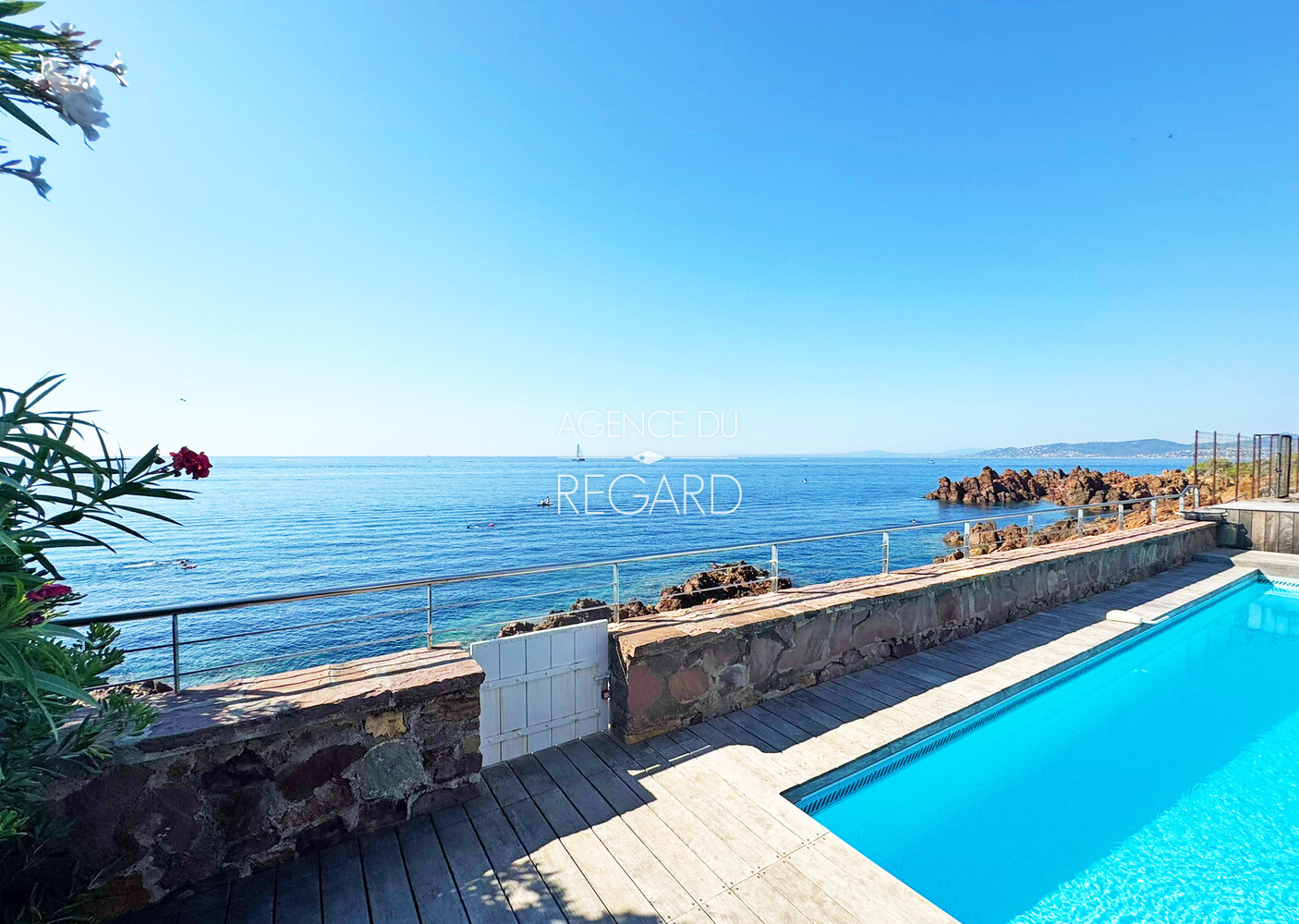 A Saint-Raphaël, dans un domaine privé sécurisé très calme, cette propriété de 680m² bénéficie d’un emplacement privilégié, les pieds dans l’eau avec un accès privé aux criques. La vue sur la mer est panoramique. La villa d’environ 190m² abrite 5 chambres dont un appartement indépendant. Une pièce de réception de 57m² est prolongée par une terrasse avec une vue mer somptueuse. Piscine sécurisée 9.50x4.90m. Garage. Cabanon de rangement. Pièce de rangement de 23m².