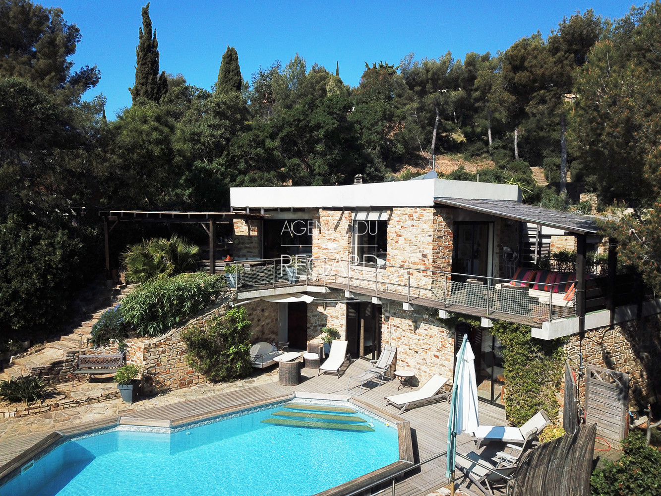 A Bormes-les-Mimosas, dans le domaine privé et gardienné du Gaou Bénat, cette propriété vue mer d'environ 1 148m² profite d'une belle vue sur la mer et se situe à seulement 10 minutes à pieds de la plage, du restaurant et de l'école de voile du domaine. Le jardin est parfaitement entretenu et paysagé. Maison d'environ 145.95m² de facture moderne qui accueille 4 chambres dont un studio indépendant. L'espace piscine profite également d'une belle vue sur l'ile du Levant et le grand large. Cave de 23m². Atelier indépendant. Stationnement privé pour plusieurs véhicules. Piscine.