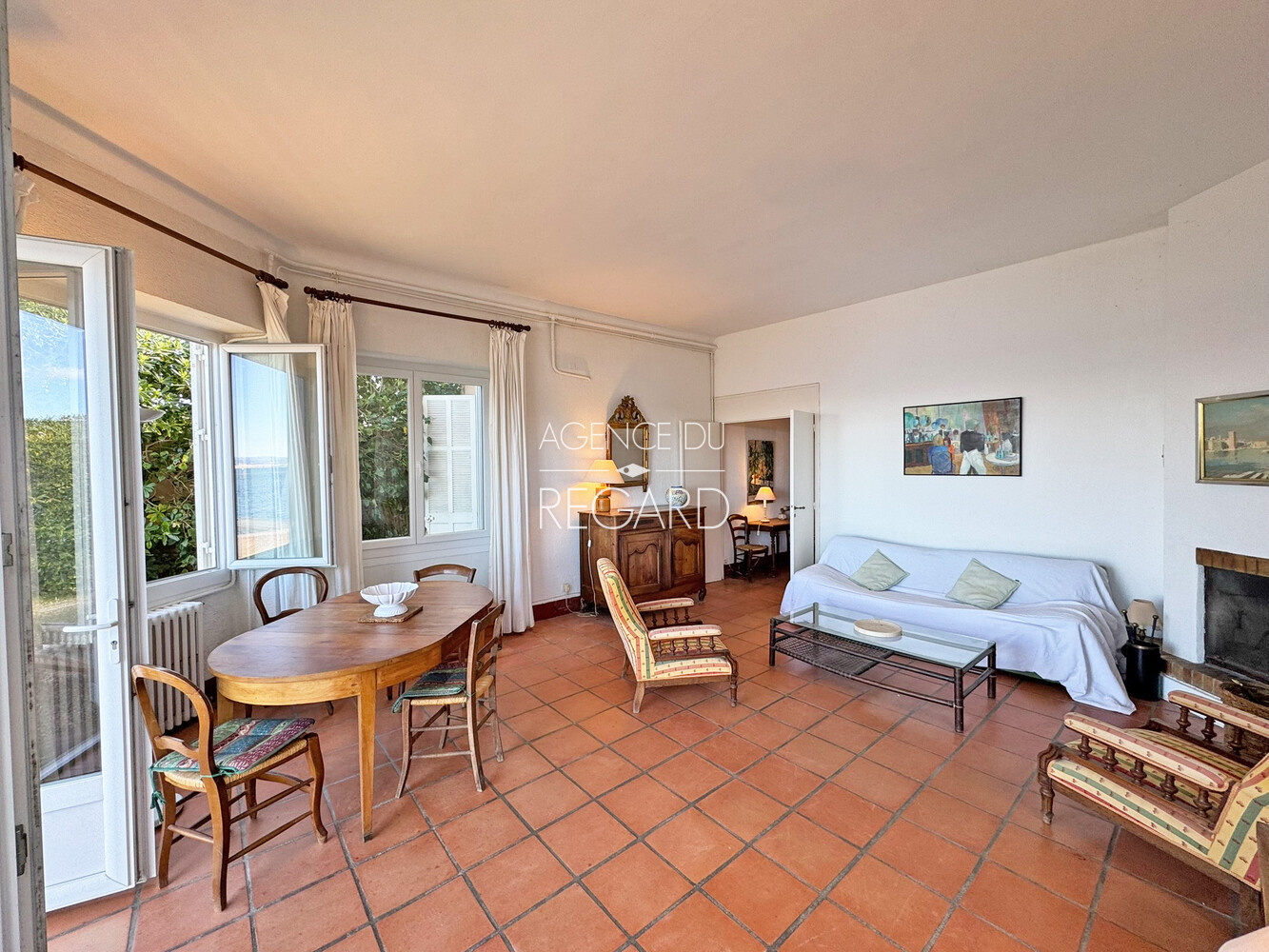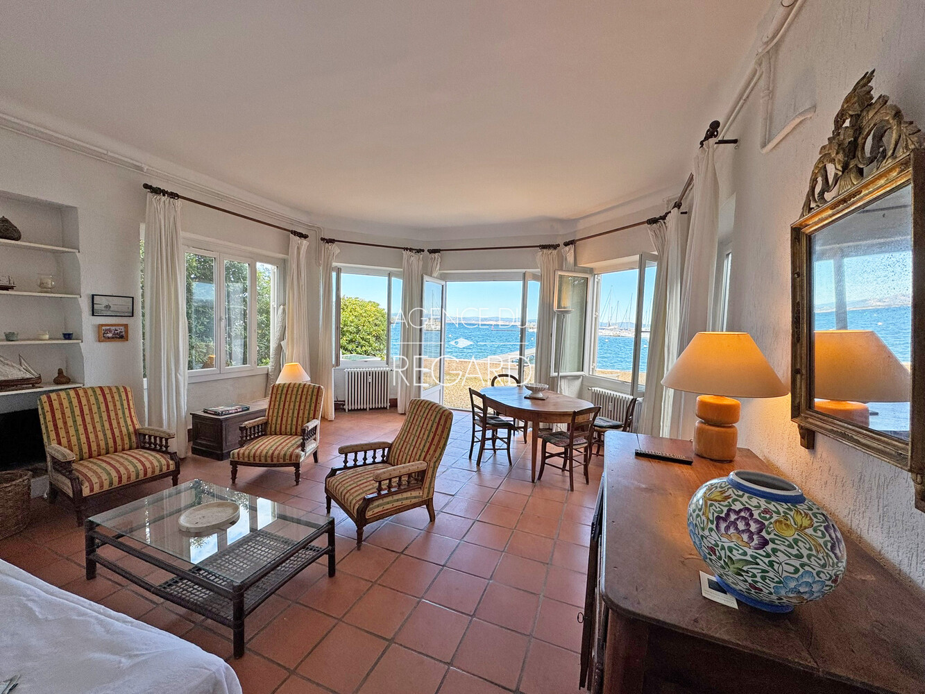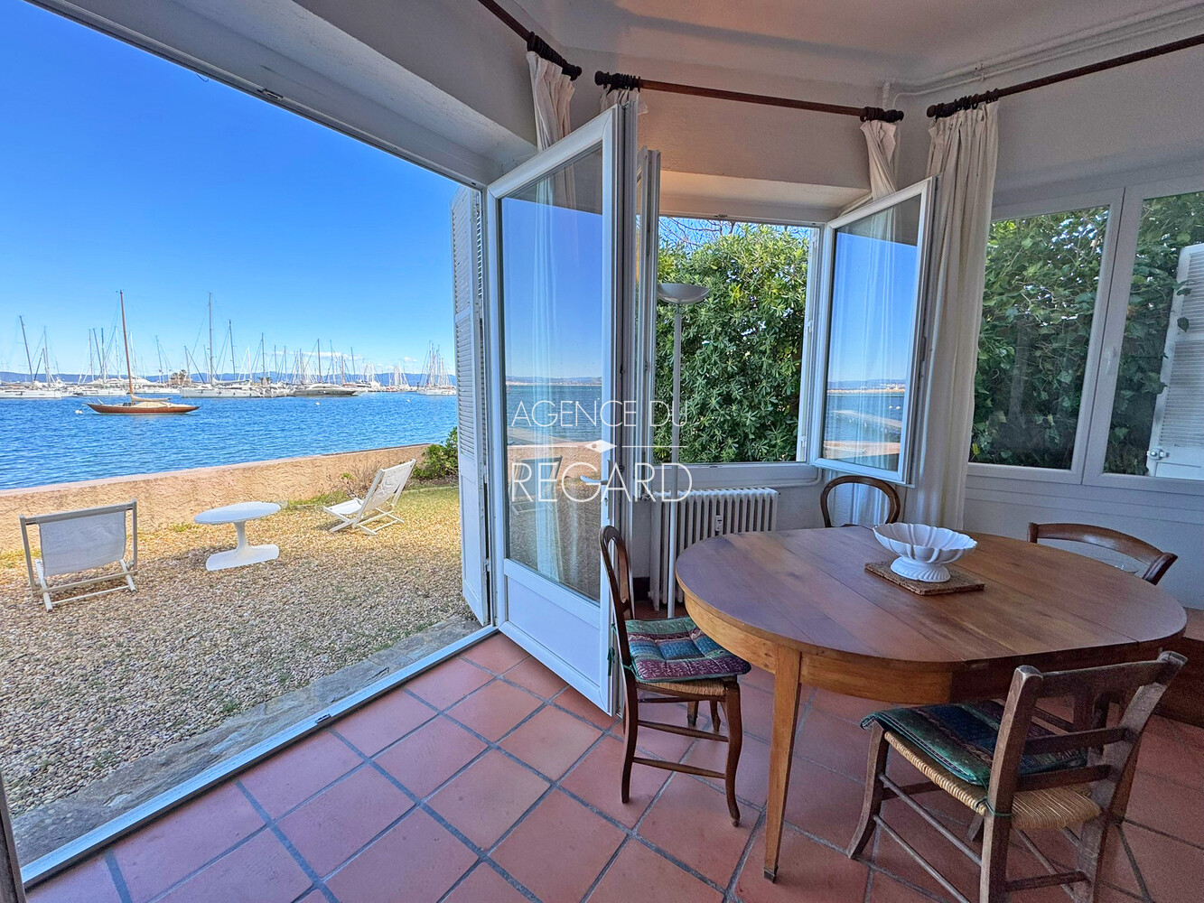Exceptionnel ! A Porquerolles, les pieds dans l’eau avec son ponton, cet appartement de 87m² offre une vue magnifique sur la mer et le port. Il est prolongé par un jardin privatif d’environ 96m², sans vis-à-vis, avec 12 mètres en façade sur la mer qui donne accès directement au ponton. Le calme est de mise puisqu’il est à l’écart des bruits et mouvements touristiques. Son accès se fait de plain-pied, par une cour joliment fleurie où les vélos peuvent être stationnés et par une loggia aménagée en hall d’entrée commun. Il abrite 3 chambres, 2 salles d’eau avec w.c., une cuisine et un séjour qui demanderont des travaux de rénovation. DPE : E – GES : E