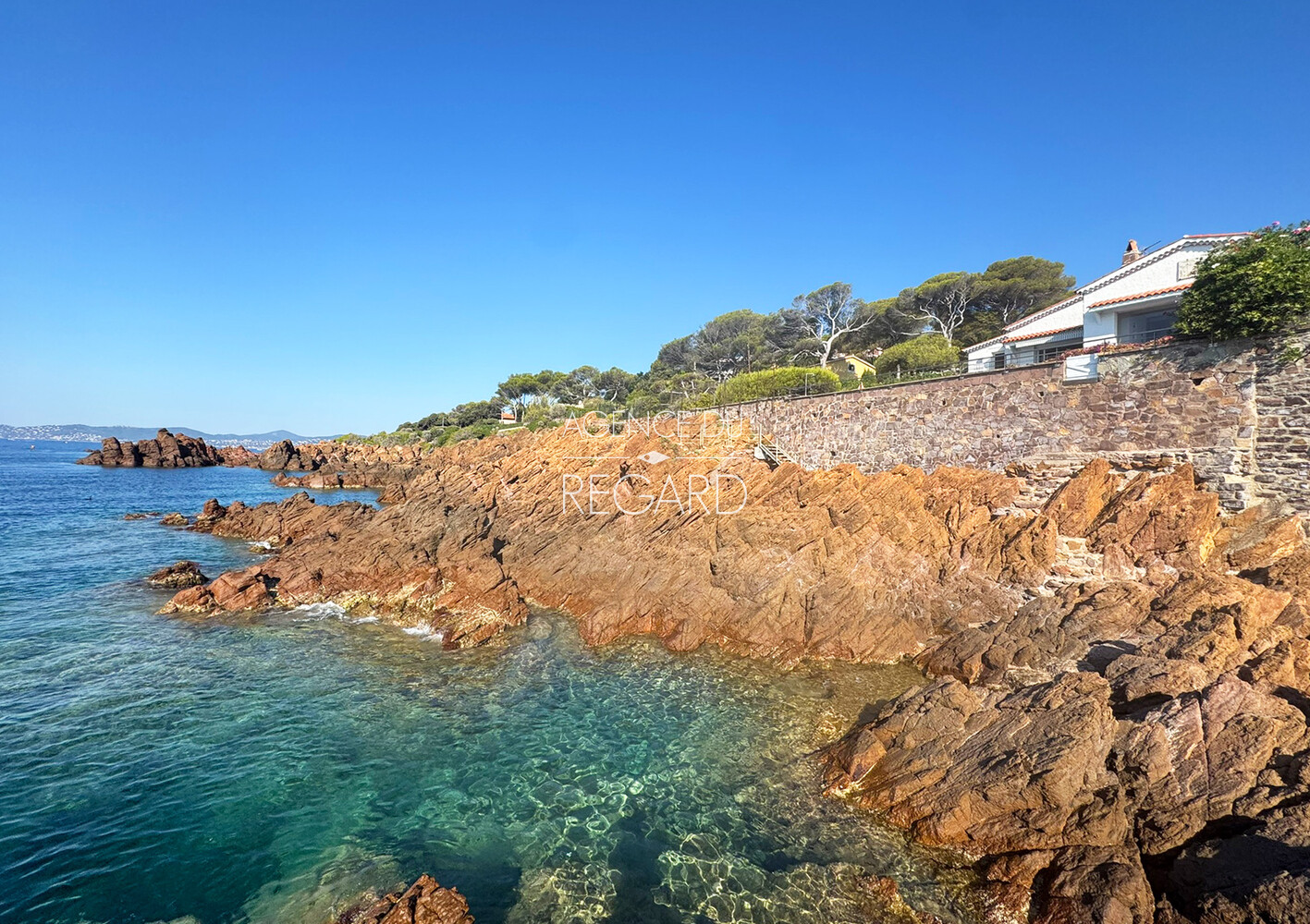 A Saint-Raphaël, dans un domaine privé sécurisé très calme, cette propriété de 680m² bénéficie d’un emplacement privilégié, les pieds dans l’eau avec un accès privé aux criques. La vue sur la mer est panoramique. La villa d’environ 190m² abrite 5 chambres dont un appartement indépendant. Une pièce de réception de 57m² est prolongée par une terrasse avec une vue mer somptueuse. Piscine sécurisée 9.50x4.90m. Garage. Cabanon de rangement. Pièce de rangement de 23m².