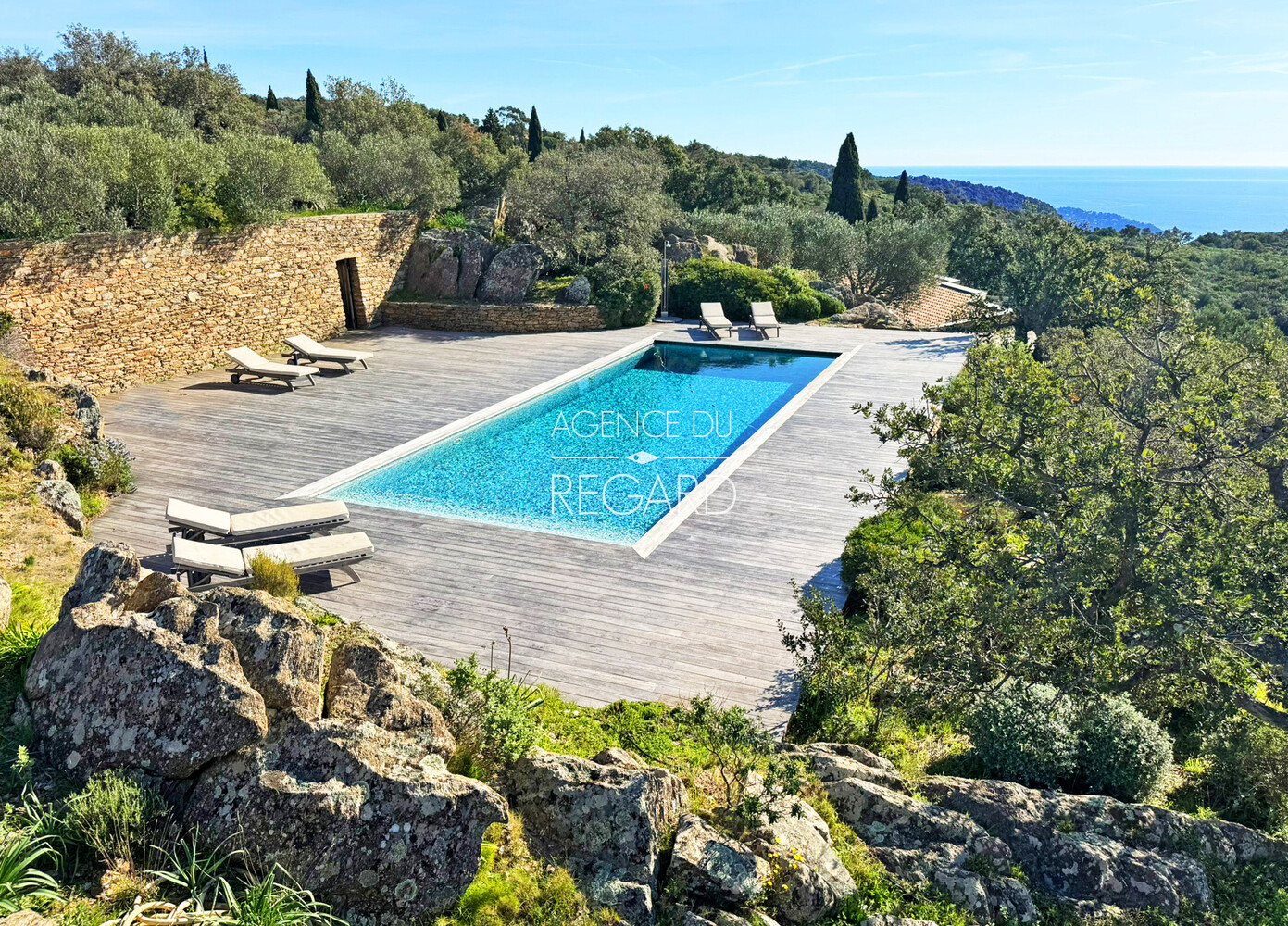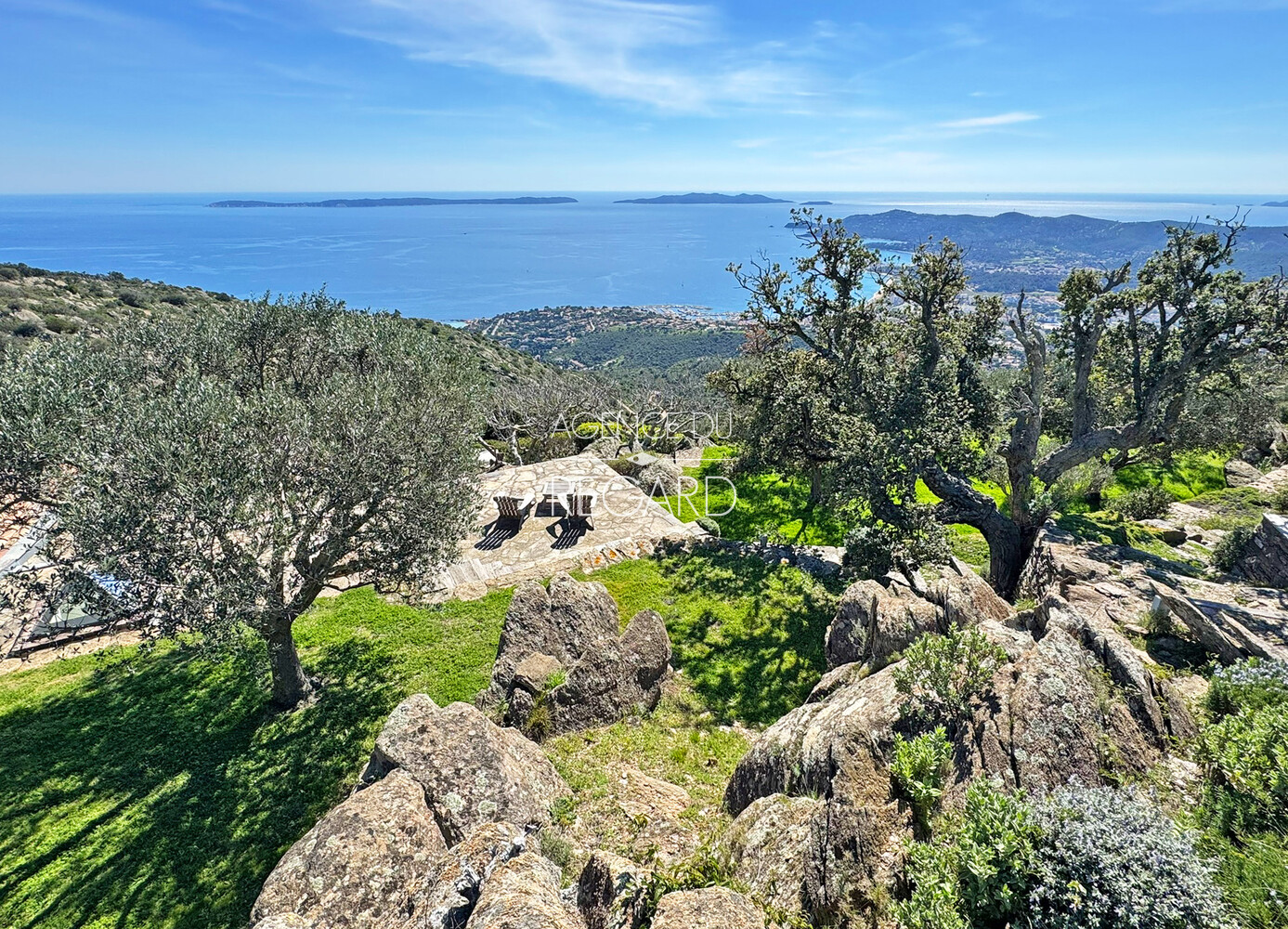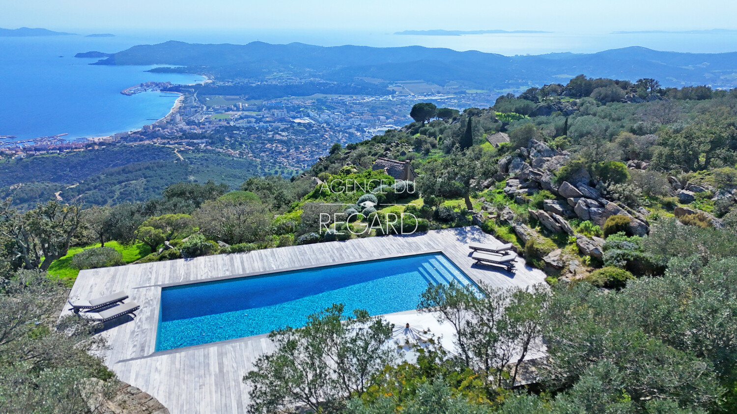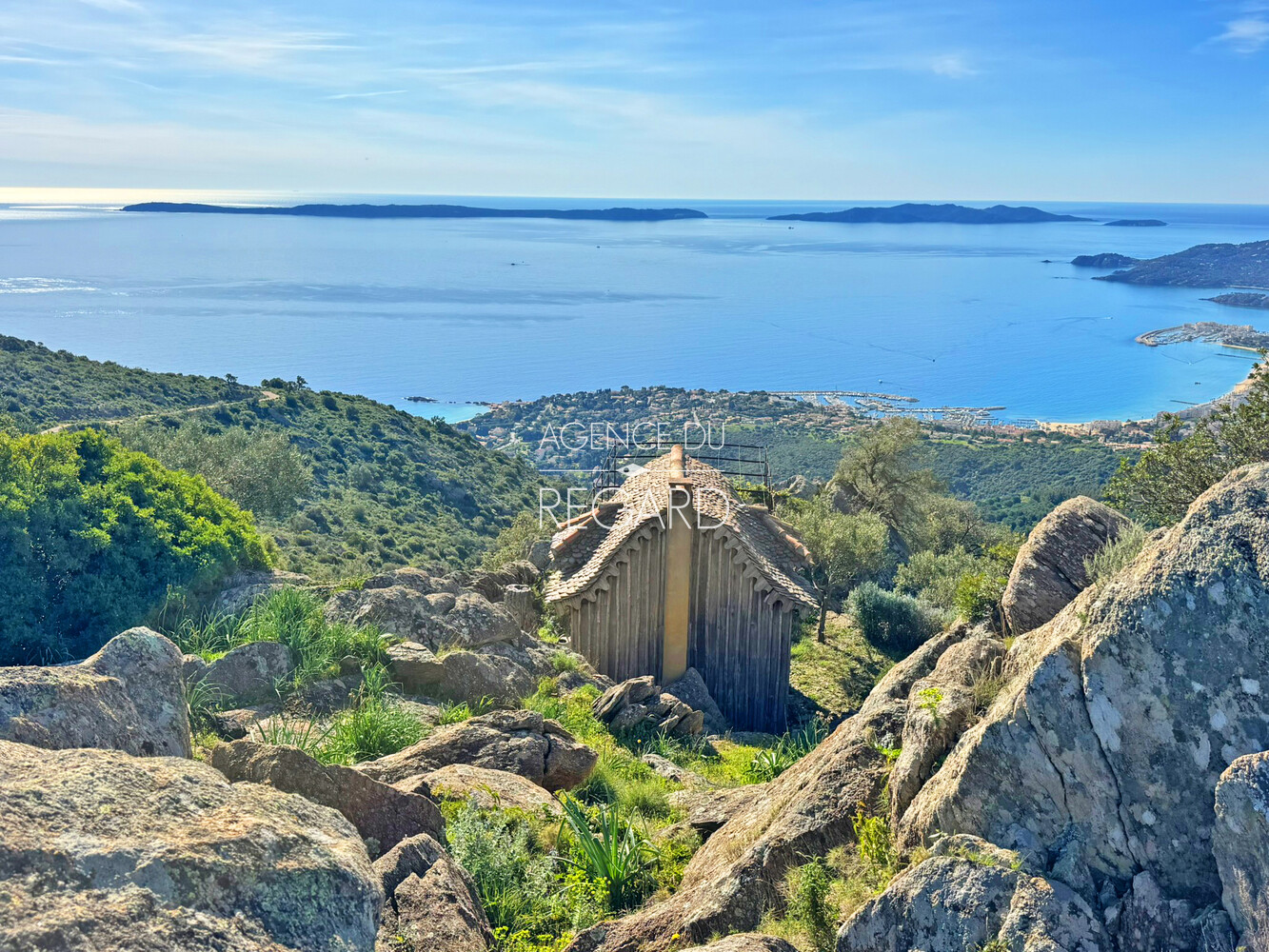 En exclusivité ! Sur la route des Crêtes entre Bormes-les-Mimosas et Le Lavandou, cette propriété exceptionnelle de 11 hectares, en pleine campagne, profite d’un panorama somptueux sur la mer. La vue mer s’étend de la presqu’ile de Giens jusqu’au Rayol-Canadel en passant par les iles d’Or. Une villa, une maison d’amis et une cabane, entièrement rénovées, offrent 300m² habitables et 7 chambres au total. Un espace piscine profite de cette vue incroyable sur la mer. DPE : C – GES : C